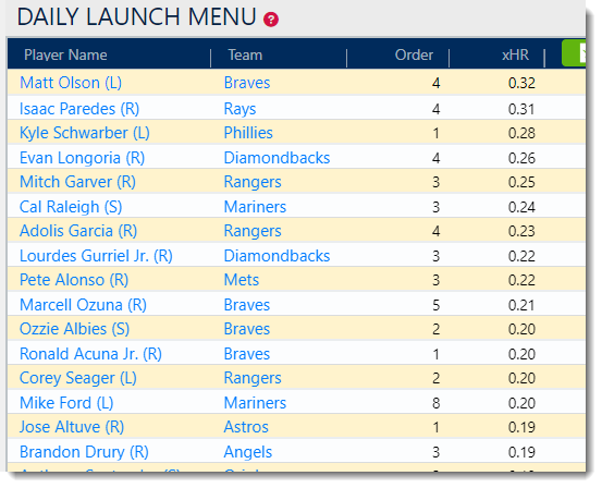 - The Daily Launch Menu serves up who is in the best matchups to go deep.